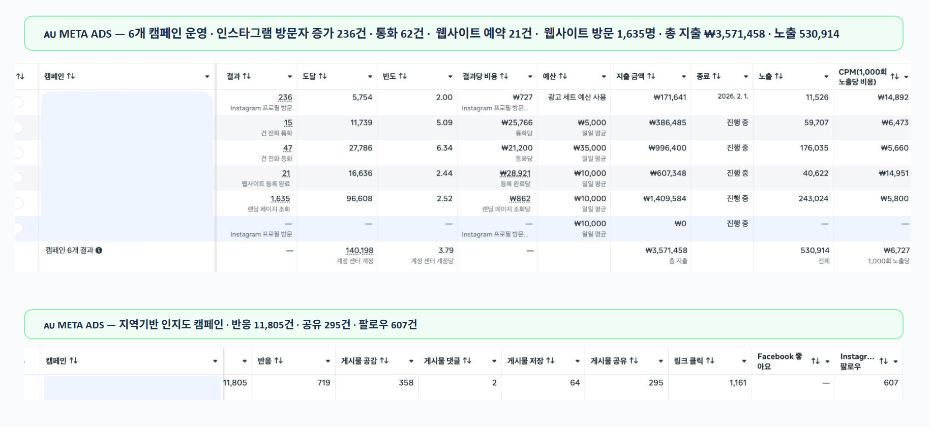 "초기 인지도 확산을 위한 캠페인으로 1만 건 이상의 유의미한 반응(Engagement)을 확보하고, 이를 세밀한 리타겟팅(Re-targeting)으로 연결해 1,635건의 유효 트래픽과 실질적인 예약 전환을 이끌어냈습니다."