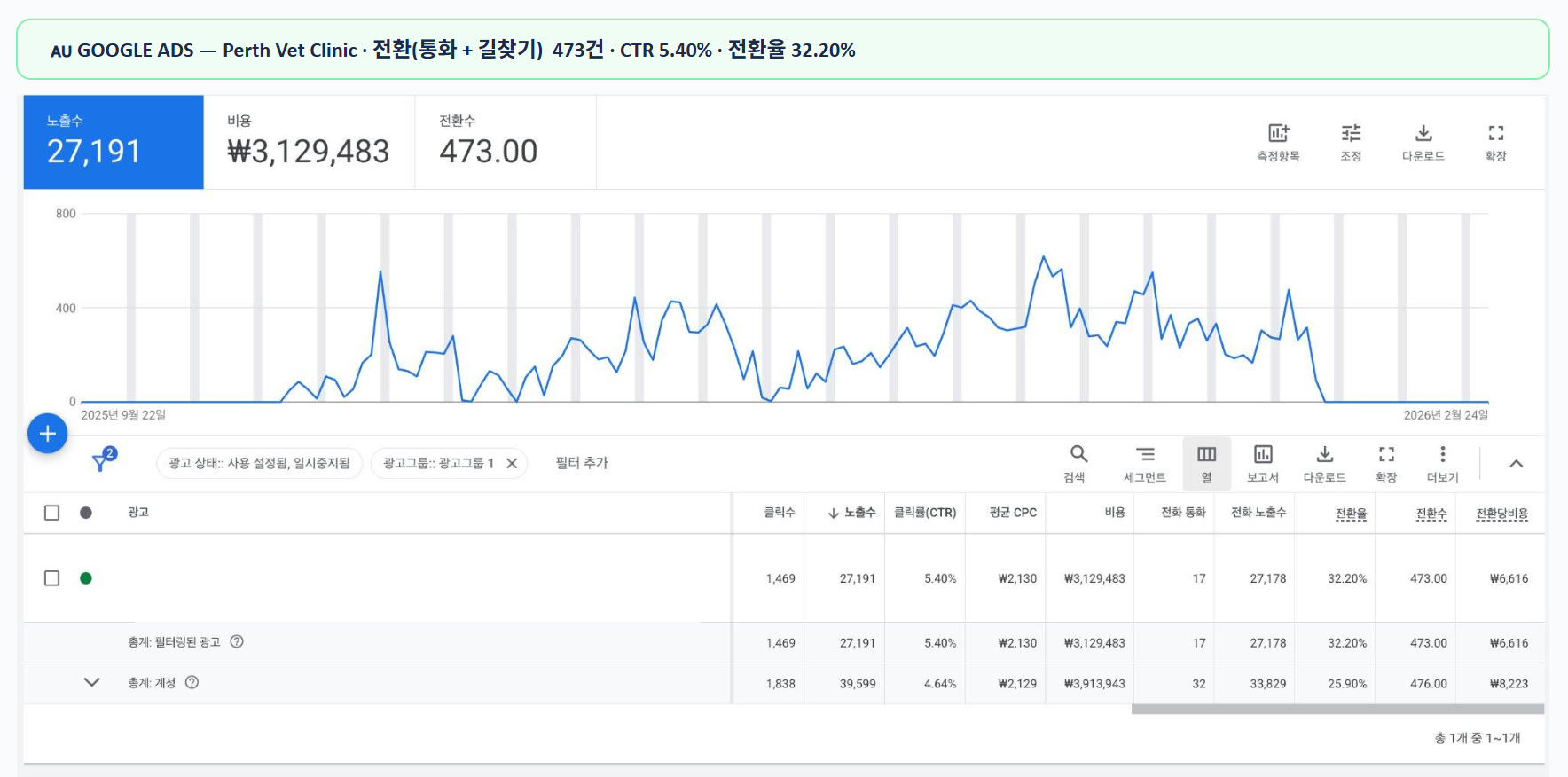 "로컬 검색 인텐트(Intent)를 정밀하게 타겟팅하여 단순 노출을 넘어 실제 내원으로 이어지는 진성 전환 473건을 창출했습니다. (압도적인 전환율 32.20% 달성)"